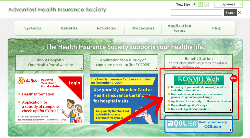 - *You can also access KOSMO Web from the top page of the Health Insurance Society’s website.