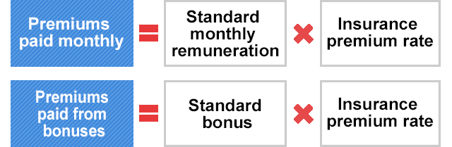 You must pay insurance premiums when you join a health insurance program. While insurance premiums are based on your income (e.g., total remuneration including salary and bonuses), methods for calculating the premiums differ between monthly salary and bonuses.